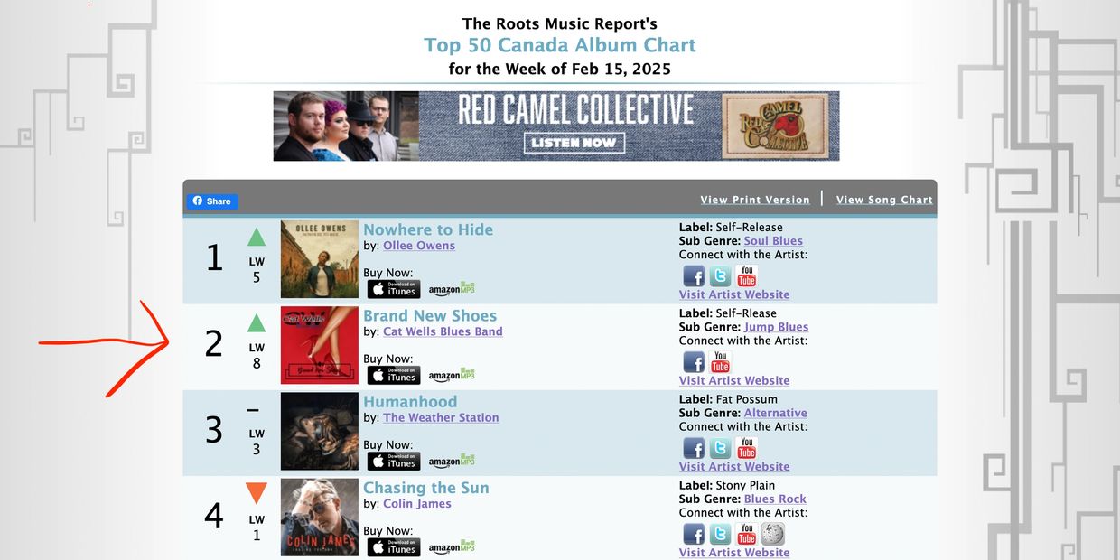 Cat Wells is a Canadian Blues artist, vocalist, song writer with ballsy vocals and expressive stage presence. Her voice has been compared to Susan Tedeschi, Beth Hart and Janis Joplin. Cat’s fondness of syncopation pulls her toward funky blues stylings. Cat’s early mentors were Billie Holiday and Etta James. She has been honoured as Vocalist of the year twice by the Okanagan Arts Council and has been featured in Okanagan Life Magazine and Wild Life Magazine. Cat and her band have performed at numerous Blues Festivals including "White Rock Blues Festival"-Whiterock BC, “Rendezvous Blues Festival”-Oroville Washington and "Beachs Blues Festival"-Toronto Ont to name a few and they were recently invited to Memphis to perform at the Women in Blues Showcase. Some of Cat’s career highlights include support for Jeff Healey, Harpdog Brown and ZZ Top amongst many others. Cat has released 2 CDs’ “Cathy-Ann Wells Live with the Bowman Trio”, “Bootleg Blues” and December 16, 2025 released "Brand New Shoes” featuring artists Jason Buie, Johnny Ferreira (Colin James band) and the late Sonny Rhodes. The latest release is now charting on both the "Roots Music Report" and the "Big Blues Charts". The band is currently working on their next release.